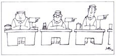 | Chaoyang District of Beijing, not far from the offices of the China Daily. His surroundings are full of art materials, drawings, books, and mementos of his travels around China and in the United States. Fang is extremely productive, putting in long hours seven days a week, not only drawing cartoons, but also painting, doing calligraphy, publishing collections of his cartoons (ten so far), and writing theoretical books on cartooning. The latter he considers very important"to find new ways of drawing" and to pass on his theory of humor and cartoons. Fang says his theory is based on history and on practice, and one of his strongest premises is that humor is the art of language and is characterized by the implied, not direct, approach. By way of example, he said that a sentence such as "When I eat to the full, no one in my family is hungry" implies that the speaker is not married. He prescribed that a cartoonist "must get familiar with somethingand then find the smartest way to say it." |